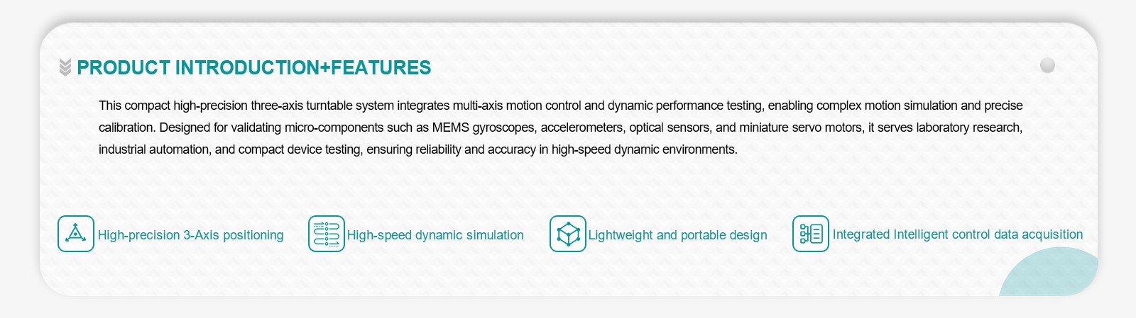 | Three-Axis Angular Position Repeatability | ≤ ±3″ |