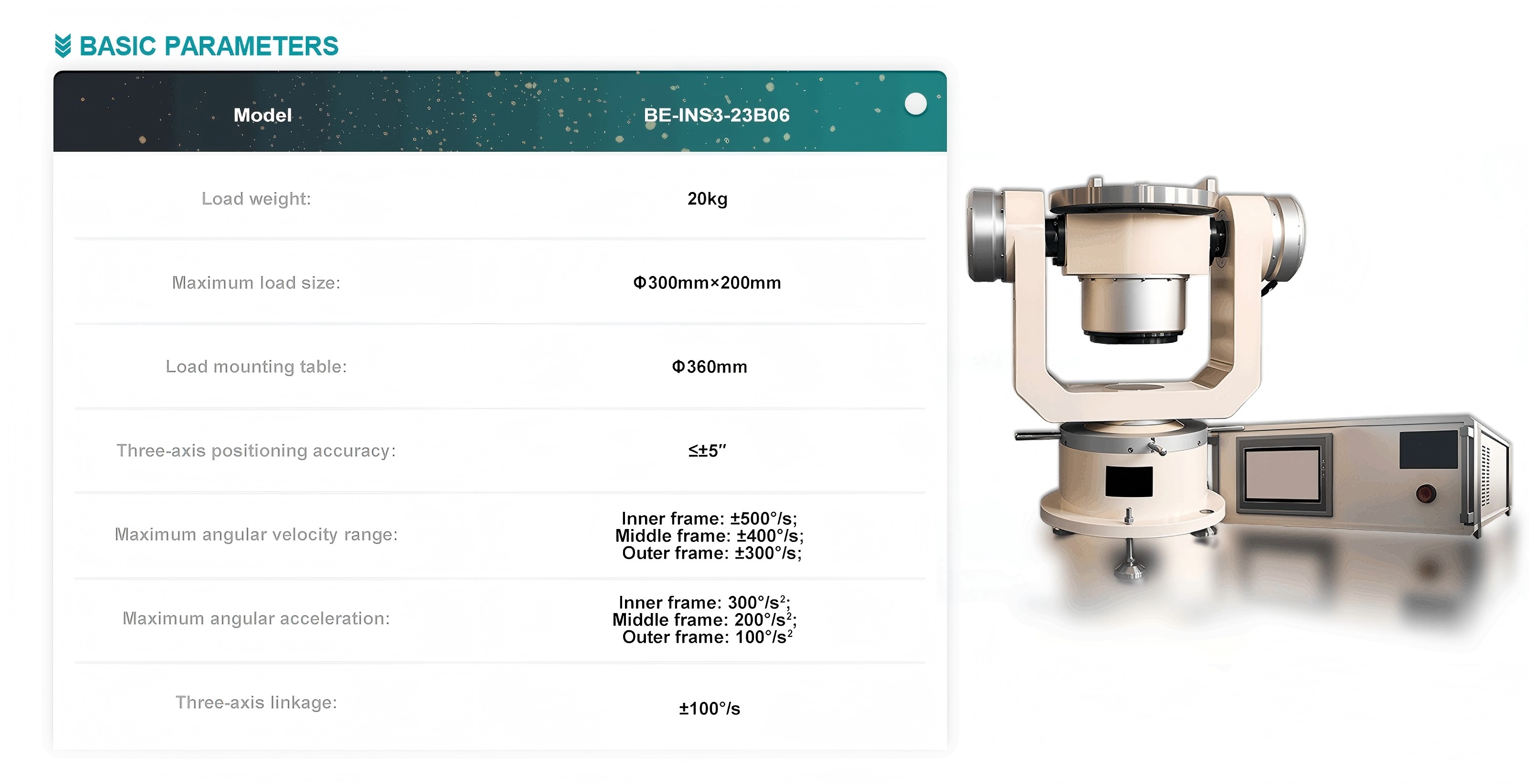| Three-Axis Position Accuracy | ≤ ±5″ |