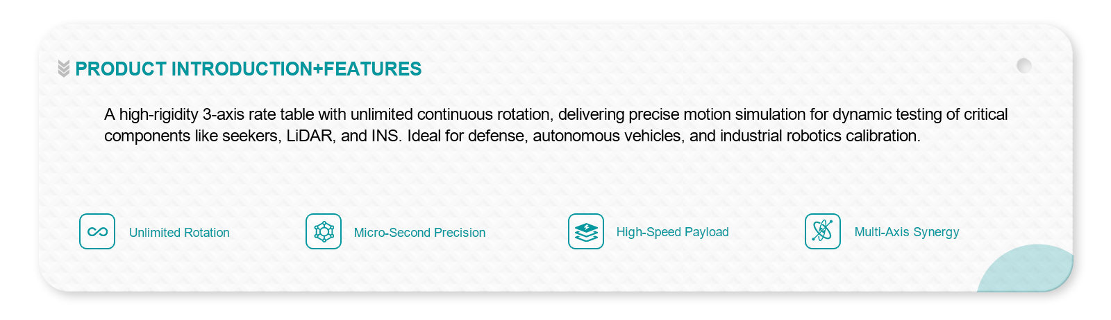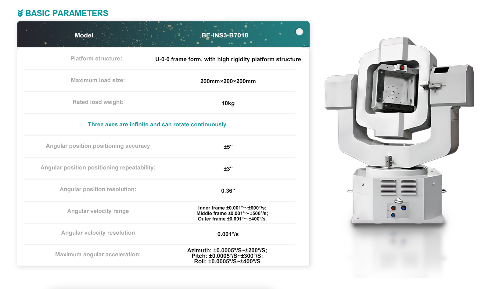 | Angular velocity range | Inner frame ±0.001° ~ ±600°/s; |