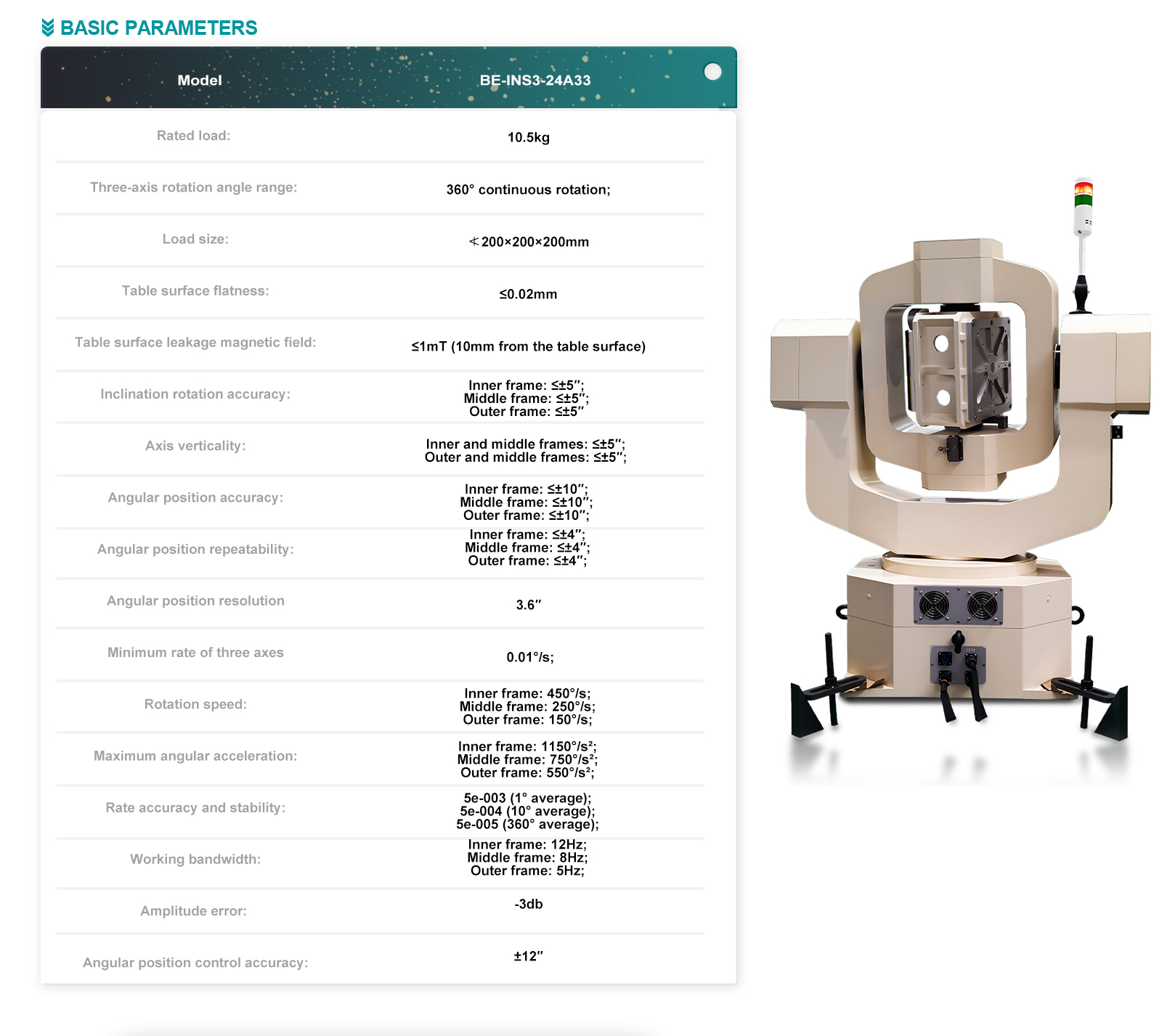 | Inclination rotation accuracy: | Inner frame: ≤±5"; |