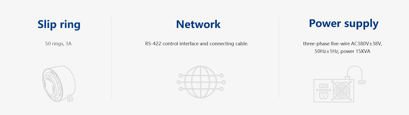 Slip rings to UUT Signal 50 ways, 3A @ 380VAC/50Hz,  40KW(Max)