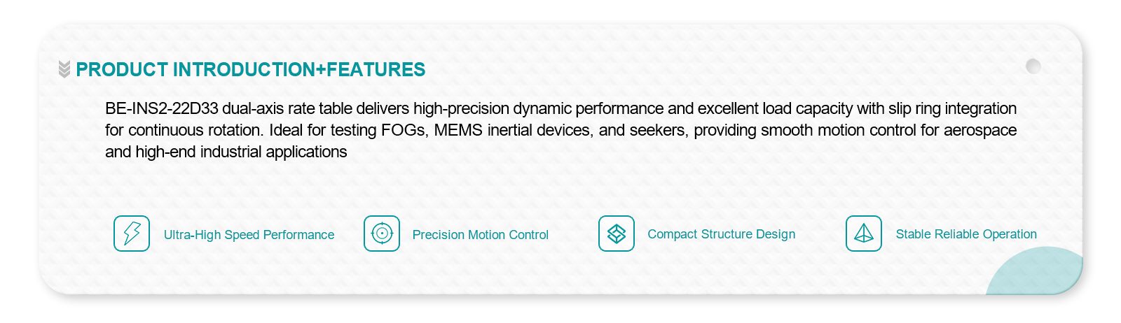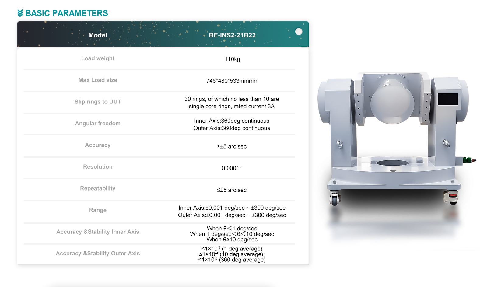 | Inner ring angular position error at constant speed | 100dps, 200dps, 300dps, 400dps, 500dps±0.0015°; 1000dps±0.002°; 2000 dps±0.0023°; |