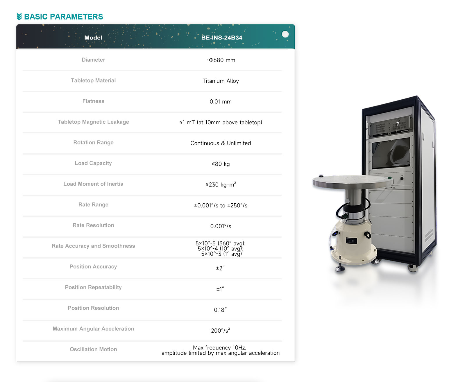| Rate accuracy and rate stability: | 5×10⁻⁵ (360° average); |