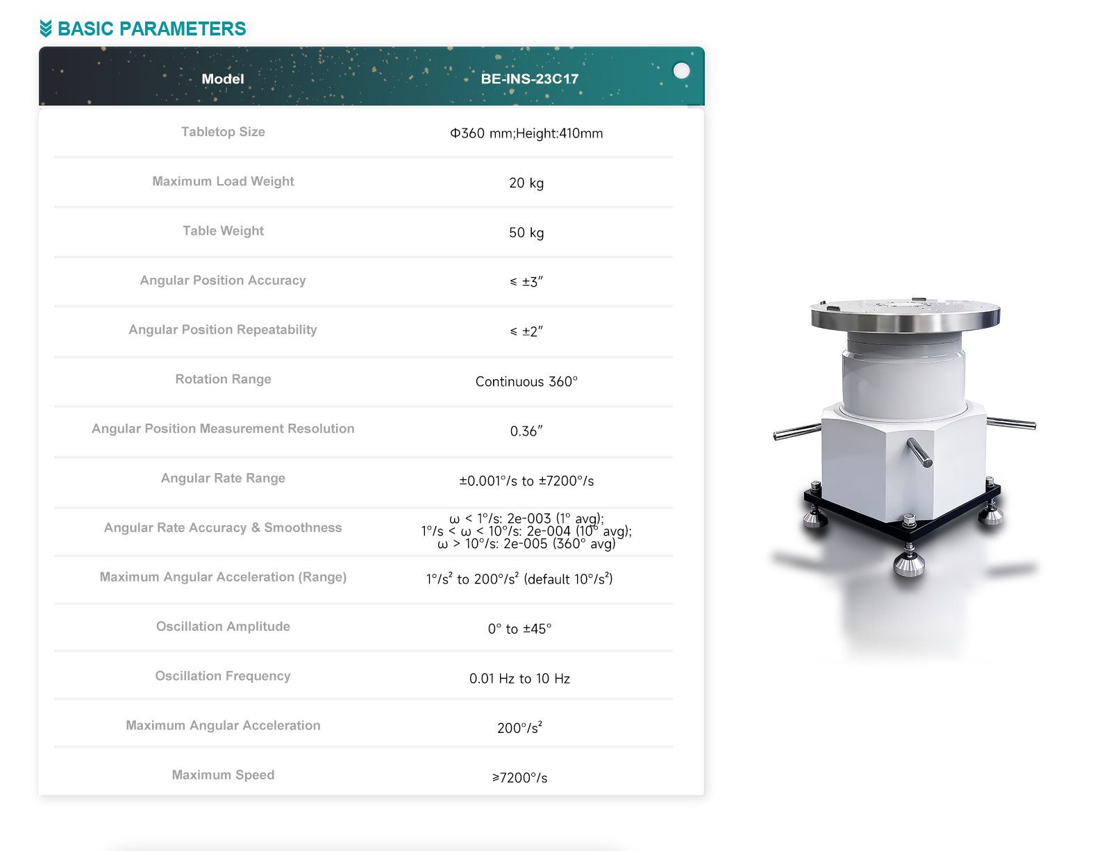 | Angular position measurement resolution | 0.36″ |