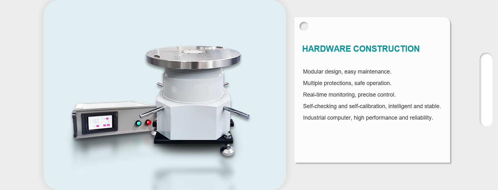 | Angular velocity accuracy and velocity stability | ω < 1°/s, 2e-003 (1° average); |