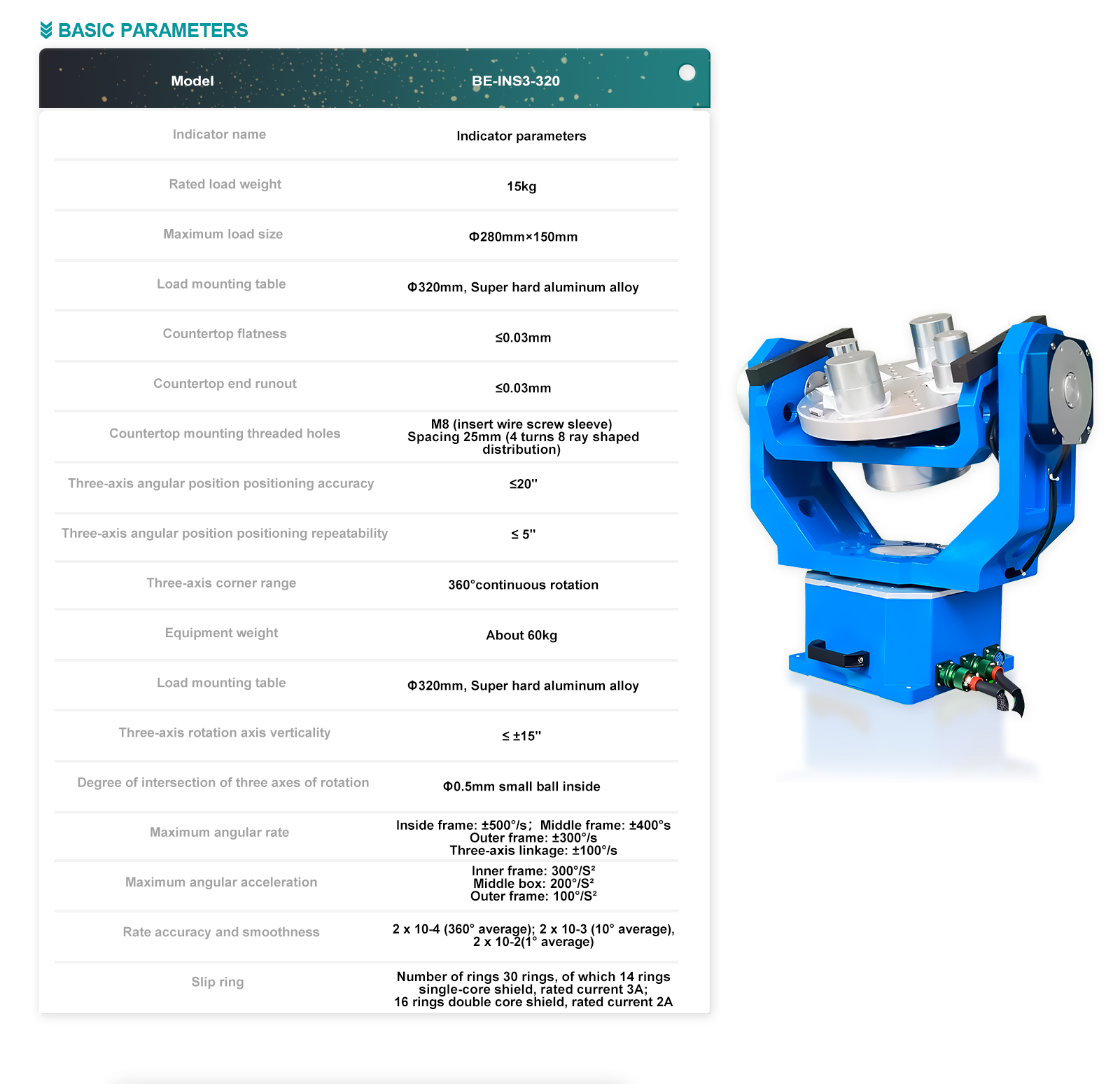 Three-axis angular position positioning accuracy |