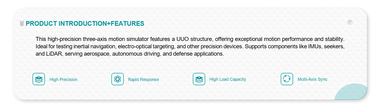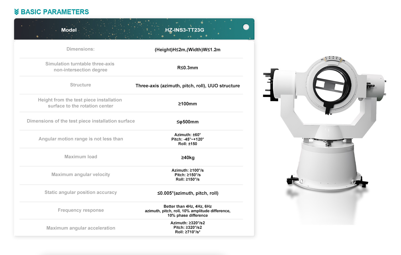 | 9 | Static angular position accuracy | ≤0.005°(azimuth, pitch, roll) |