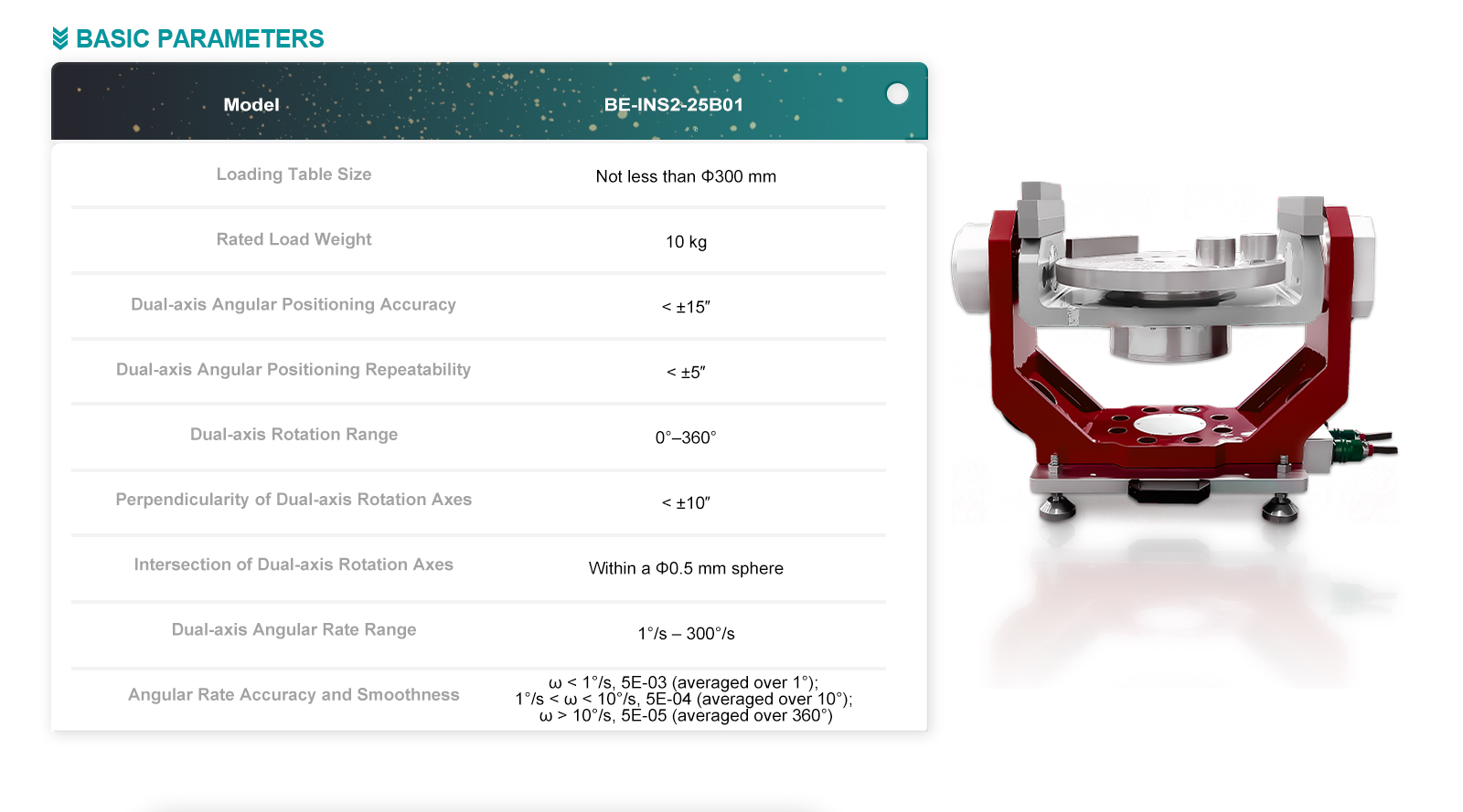 | Two-axis angular position positioning repeatability | ≤±5" |