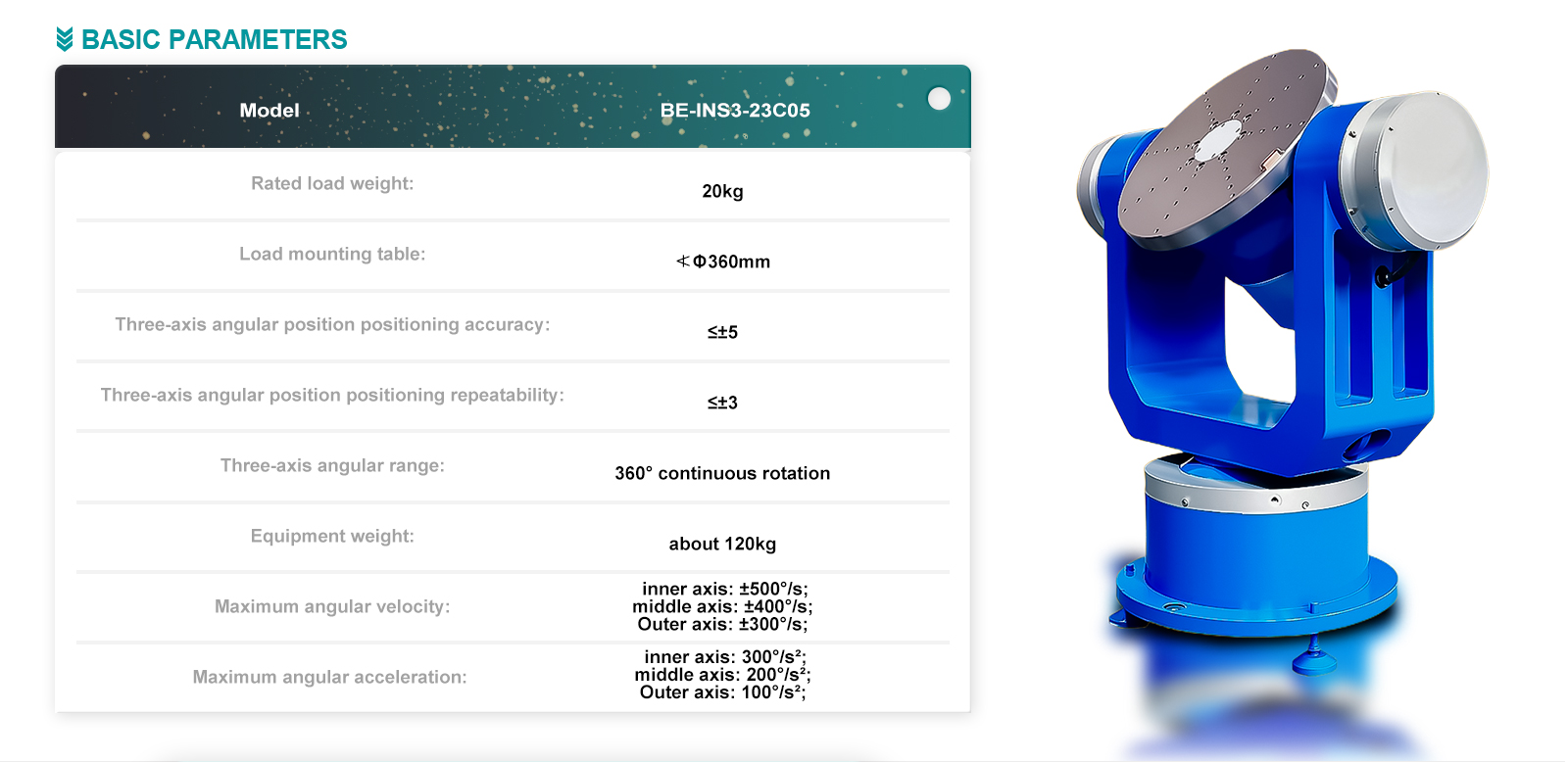 Three-axis angular position positioning accuracy |