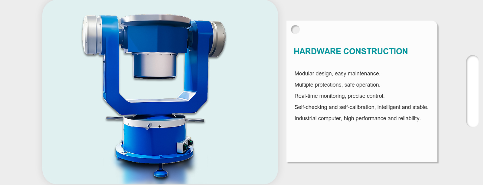 Inside frame: ±500°/s; Middle frame: ±400°s, Outer frame: ±300°/s; Three-axis linkage: ±100°/s |
