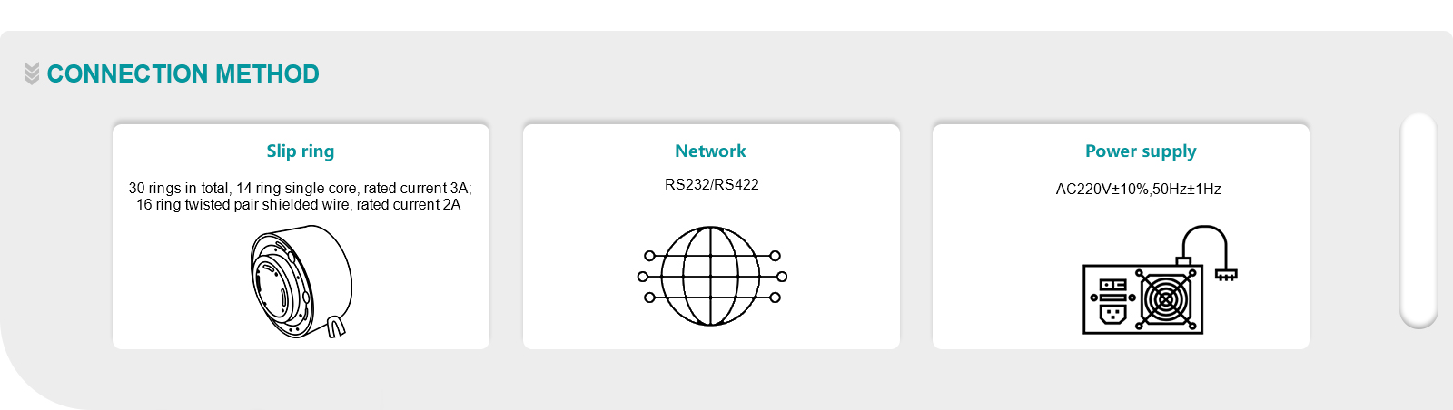Number of rings 30 rings, of which 14 rings single-core shield, rated current 3A; 16 rings double core shield, rated current 2A |