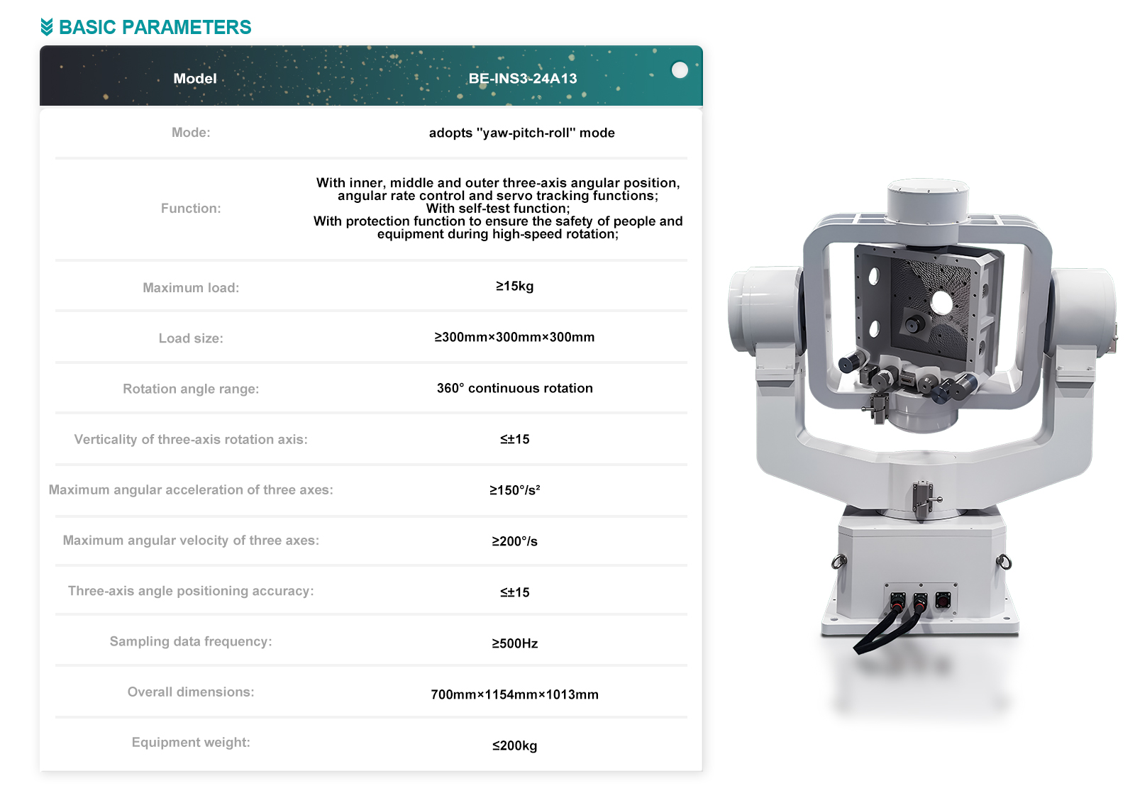 | Maximum angular acceleration of three axes | ≥150°/s² |